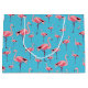 Um padrão brilhante de flamingo cor-de-rosa com cor azul de fundo. Design de Verão tropical perfeito para quem ama pássaros, verão ou praia. Presente perfeito para qualquer um e qualquer idade. Presente ideal para um aniversário, para o Natal ou qualquer outra ocasião especial.