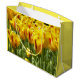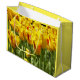 Sacola Para Presentes Grande Tulipas Amarelas com Faixa Vermelha Floral