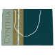 Sacola Para Presentes Grande Turquesa Dourada Elegante