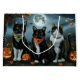 Libere o espírito assustador com esta design sombria do Dia das Bruxas apresentando um pacote de Gatos sob um céu escuro e iluminado, cercado por morcegos voadores e abóboras brilhantes. Perfeito para aqueles que amam um toque de diversão terrível com seus amigos peludos!