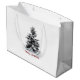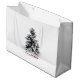 Grande saco branco brilhante com imagem, na frente e atrás, de um pinheiro solitário coberto por neve e "Feliz Natal" impresso sob a forma vermelha. Veja o saco de presentes médio correspondente, confetti, etiqueta de favor, etiqueta, adesivo redondo e papel de embalagem. Veja toda a coleção Holiday Gift Bag nos TOUCHES ESPECIAIS | Seção Favoritos para festas.