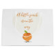 Uma bolsa de presente de chá de fraldas grande com um tema de pêssego. O item diz "Está a caminho um pouco de pêssego". A design inclui um sorriso, um desenho animado, um pêssego e um coração rabiscado. Personalize as palavras, adicione isso ao seu carrinho e tenha um chá de fraldas maravilhoso.