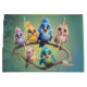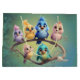 Uma bela parada de pássaros de desenho animado em cores vibrantes. Os pássaros são projetados em tons brilhantes e coloridos, incluindo azul, amarelo, rosa e azul-esverdeado. Seus olhos grandes e expressivos irradiam alegria e curiosidade, dando a toda a cena uma atmosfera carinhosa e fofa. O fundo é um verde macio e apresenta um gradiente suave que desenhar o foco para as aves.