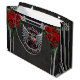 Uma simbiose gótica, cabelos elegantes e crânios. Impressionante quadro escuro em estilo gótico com um coração prateado articamente desenhado cercado por asas majestosas. As joias vermelhas adoram o coração. Dois crânios decoram o quadro. Esses elementos somam uma profundidade escura, mas fascinante, à imagem geral e reforçam o caráter gótico do design.
