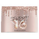 Adorável doce 16 e rosa dourado pingam em fundo rosa de ouro. Qualquer garota adoraria que seu nome fosse personalizado nesta design de na moda.