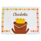 Ilustração de um ursinho bonitinho vestindo um chapéu de festa, o nome personalizado pode ser alterado.