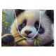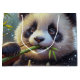 Pintura de jovens panda giros comendo prigos de bambu verde
