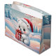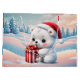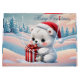 O pequeno urso polar de Natal está envolto num pelo branco macio e liso. Seus grandes olhos redondos brilham com curiosidade e alegria enquanto ele guarda seu dom. O pequeno urso polar de Natal irradia calor e segurança e espalha um humor festivo com sua aparência doce e acessório festivo.
