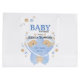 Ursos Adoráveis de Teddy com bonés dormindo em uma estrela azul. Bebês gêmeos bonitos e coloridos chá com estrelas e pontos em azul, bege e e creme. Personalize alterando o texto ou personalize ainda mais para adicionar seu próprio toque.