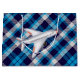 A Blue Plaid Large Gift Bag With A White Airplane Center For Birthdays Or Going Away Trips