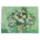 Vincent Van Gogh, Rosas, 1890. Impresso num saco de presentes. Antiga pintura famosa com flores brancas em um pote e um tom verde em estilo postimpressionista. Licença CCO, dominio público art.
