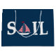 Ilustração de design de texto de vela com decoração de barco à vela em fundo azul escuro. É possível mudar a cor de fundo e adicionar uma diferente à design com sua escolha.