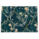 Veluz, fundo verde profundo com padrão marroquino dourado e flores de orquídea.