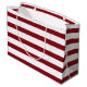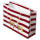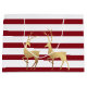 Marrom escuro listras horizontais vermelhas em branco com duas silhuetas de veados de ouro faz disso uma escolha moderna de bolsa de presente chic para qualquer ocasião de feriado
