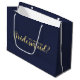 "Você Será Minha Porta-Voz?" O saco de presentes de propostas modernas apresenta o título "Will You Be My Bridesmaid?" no estilo de fonte de script moderno em fundo azul marinho. Nota: Os detalhes da folha são simulados no trabalho de arte. Não será utilizada nenhuma folha de alumínio real no fazer deste produto.