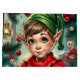 A sweet Christmas gift bag with a cute elf cartoon and a festive snowflake background.
