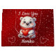 Sacola Para Presentes Grande White Bear e Red Eu Amo Você Nome Personalizado