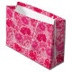 Grande saco de presentes em uma vintage William Morris, Art Nouveau, impressão floral de crisântemos estilizados, melhorado digitalmente e colorido, em tons de cor-de-rosa fuchsia profunda, rosa azálea, rosa, e burgundy, sobre fundo rosa pálido