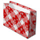 Sacola Para Presentes Grande Xadrez de Buffalo Vermelho e Branco com Flocos de