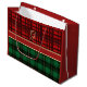 Sacola Para Presentes Grande Xadrez Vermelha e Verde com Dourada Inicial