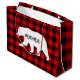 Sacola Para Presentes Grande Xadrez Vermelha Moderna E Urso Branco