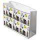 Este saco de presentes apresenta as palavras "Cuidado" em uma fonte impressão única com letras roxas com zumbis, gatos pretos, bruxas e morcegos sobre uma lua brilhante com ícones/decais de halloween. Todos os sacos de presentes são feitos com papel de qualidade premium para maior durabilidade e sua escolha de acabamento mate ou brilhante está disponível em três excelentes adicionais para chás de fraldas, casamentos ou aniversários.