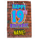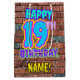 A frente desta design de presente de aniversário divertida mostra a mensagem "FELIZ 19º ANIVERSÁRIO", tendo um olhar colorido, vibrante, grafite e arte urbana de rua inspirada, além de um nome de destinatário personalizado. O plano de fundo apresenta um padrão inspirado pela aparência de uma parede de tijolos. Uma bolsa vibrante como esta pode ser uma maneira divertida de embrulhar um presente de aniversário ou um presente dado a alguém que comemora seu aniversário de 19 anos. [~Z0000536]