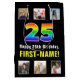 Este design de bolsa de presente, com tema de aniversário, otimista e divertido apresenta um grande número de "25", tendo um espectro de arco-íris vibrante inspirado em um padrão de gradiente, junto com a mensagem "Feliz 25 de Aniversário", e um nome de destinatário personalizado. As fotos acima e abaixo da mensagem podem ser personalizadas, talvez com fotos do receptor, da família e dos amigos do destinatário e/ou do(s) remetente(s) do presente. Um saco-presente como este pode ser usado quando se dá um presente ou um presente em honra do vigésimo quinto aniversário de alguém. (Fotografia © Storytree Studios, Stanford, CA.) [~Z0000669]