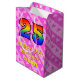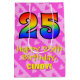 Este design de presente temático de aniversário otimista, amoroso e alegre apresenta um grande número de "25" com um padrão inspirado no gradiente do espectro arco-íris, juntamente com a mensagem "Feliz 25 Aniversário", e um nome de destinatário personalizado. Também tem um fundo divertido com formas cardíacas cor-de-rosa dentro de um padrão listrado. Um saco de presentes feliz como este pode ser usado quando embrulhar presentes é dado a alguém em comemoração de seu vigésimo quinto aniversário. [~Z0000511]