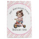 Ilustração adorável de uma garotinha andando num triciclo vermelho, cercado por balões coloridos e flores, perfeita para celebrar um aniversário de 3 anos. As cores doces e os detalhes divertidos tornam este design ideal para convites, decoração de festas e manutenção do dia especial de uma menina.