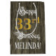 Este elegante e ornamentado design de presente de aniversário apresenta a mensagem "Feliz 33º Aniversário", além de um nome de destinatário personalizável. Parte da mensagem está no texto estilo script do rico, o grande número "33" apresenta um padrão de aparência imitado/falsa inspirado em ouro, e o fundo tem um padrão de imitação/falsa inspirado em madeira. Uma bolsa de presente opulente como esta pode ser uma maneira respeitável de embrulhar um presente de aniversário ou um presente dado a alguém que está celebrando seu 33º aniversário. [~Z0000562]