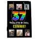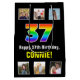 Esta alegre e alegre design de presente de aniversário apresenta um grande número "37", tendo um espectro colorido de arco-íris inspirado em um padrão de gradiente, além da mensagem "Feliz 37º aniversário", e um nome de destinatário editável. As fotos acima e abaixo da mensagem podem ser personalizadas, talvez com fotos do receptor, da família e dos amigos do destinatário e/ou do(s) remetente(s) do presente. Um saco-presente como este pode ser usado quando embrulhar presentes é dado a alguém em comemoração do seu trinta e sétimo aniversário. (Fotografia © Storytree Studios, Stanford, CA.) [~Z0000669]