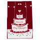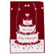 O saco médio personalizado do presente do aniversário do rubi do vermelho 40th com um bolo a três níveis e a estamenha projetam.