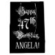 Este design de presente temático de aniversário opulente e elaborado apresenta a mensagem "Feliz 47º aniversário", em texto luxuoso do estilo script, em um fundo preto colorido. Ele também apresenta um nome de destinatário personalizável. Uma bolsa de presente de aniversário lata como esta pode ser uma maneira respeitável de embrulhar um presente ou presentear alguém que comemora seu 47º aniversário. [~Z0000557]