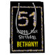 Este design de presente de aniversário floral, inspirado no jardim, tem a mensagem "Feliz aniversário de 51ruas" e um nome de destinatário personalizado. O grande número "51" mais a borda apresentam ícones de flor. Um presente temático de aniversário como este pode ser usado quando se dá um presente para celebrar o cinquenta e um aniversário de alguém. [~Z0000653]