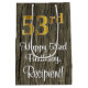 Este elegante, na moda, e luxuoso aniversário, chamado design do giftbag, apresenta um grande número ordinal "53º", com um visual falho/imitação inspirado em ouro, mais a mensagem de saudação de aniversário "Happy 53º Aniversário" e um nome de destinatário editável em uma fonte estilo script. Também tem um padrão de fundo falsa inspirado em madeira. Uma sofisticada bolsa de presente temático de aniversário como esta pode ser uma maneira divertida de embrulhar um presente ou presente para celebrar o 53º aniversário de alguém. [~Z0000520]
