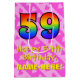 Este design de bolsa de presente temático de aniversário otimista, divertido e amoroso apresenta um grande número "59" com um padrão inspirado no gradiente do espectro arco-íris, juntamente com a mensagem "Feliz 59º aniversário", e um nome de destinatário personalizado. Ele também tem um padrão alegre de fundo com formas e listras cardíacas cor-de-rosa. Um saco de presentes feliz como este pode ser usado ao embrulhar presentes que estão sendo dados a alguém em comemoração de seus cinquenta e nono anos. [~Z0000511]