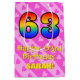 Este design de bolsa de presente alegre, otimista e divertida de aniversário apresenta um grande número de "63" com um padrão de estilo de gradiente do espectro arco-íris, juntamente com a mensagem "Feliz 63º Aniversário", e um nome de destinatário personalizável. Também tem um fundo carinhoso que apresenta formas cardíacas cor-de-rosa dentro de um padrão de listras. Um saco de presentes feliz como este pode ser usado quando embrulhar presentes sendo dados a alguém em comemoração do seu 63º aniversário. [~Z0000511]