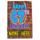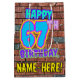 A frente desta design de presente de aniversário divertida mostra a mensagem "FELIZ 67º ANIVERSÁRIO", tendo uma vibrante, colorida arte urbana e grafite inspirada, além de um nome de destinatário editável. O plano de fundo apresenta um padrão inspirado pela aparência de uma parede de tijolos. Um saco de presentes vibrantes como este pode ser usado ao embrulhar presentes sendo dado a alguém em comemoração do seu 67º aniversário. [~Z0000536]