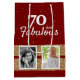 70 and Fabulous Gold Glitter 2 Photo 70th Birthday Gift Bag. Personalized red gift bag with 2 photos and gold glitter. Add your photos - you can use an old and new photo.