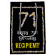 Este design de presente de aniversário floral, inspirado no jardim, mostra a mensagem "Feliz 71ruas Aniversário," junto com um nome de destinatário personalizável. O grande número "71" mais a borda apresentam ícones de flor. Um presente divertido como este pode ser usado ao embrulhar presentes que estão sendo dados a alguém em comemoração de seu setenta e primeiro aniversário. [~Z0000653]