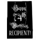 Este elaborado e opulente design de presente de aniversário com o tema giftbag apresenta a mensagem "Feliz 74.º Aniversário" no texto do estilo do ornamentado, num fundo de cor preta. Ele também apresenta um nome de destinatário personalizado. Uma bolsa de presente temida de aniversário elegante como esta pode ser uma forma respeitável de embrulhar um presente ou presente para celebrar o setenta e quarto aniversário de alguém. [~Z0000557]