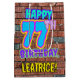 A frente deste design de presente temático de aniversário divertido apresenta a mensagem "FELIZ 77º ANIVERSÁRIO", tendo um olhar vibrante, colorido e inspirado no grafite, junto com um nome de destinatário personalizável. O plano de fundo apresenta um padrão inspirado na parede do tijolo. Um saco de presentes temático de aniversário como este pode ser uma maneira divertida de embrulhar um presente ou de apresentar a alguém que comemora seu 77º aniversário. [~Z0000536]