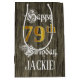 Este design de sacola de presente temático de aniversário de ornamentado e rico apresenta a mensagem "Feliz 79º aniversário", juntamente com um nome de destinatário personalizável. Parte da mensagem está no texto luxuoso estilo script, o grande número "79º" apresenta um padrão de aparência imitado/falsa inspirado em ouro, e o fundo tem um padrão de imitação/falsa inspirado em madeira. Um saco de presentes como este pode ser usado ao embrulhar presentes que são dados a alguém em comemoração do seu 79º aniversário. [~Z0000562]