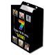 Este design de saco-presente, com temas de aniversário ousados e chamuscadores, apresenta um grande número "7", tendo um espectro colorido de arco-íris inspirado num padrão de gradação, juntamente com a mensagem "Feliz 7 Aniversário", e um nome de destinatário personalizado. As fotos acima e abaixo da mensagem podem ser personalizadas, talvez com fotos do receptor, da família e dos amigos do destinatário e/ou do(s) remetente(s) do presente. Um saco de presentes como este pode ser usado ao embrulhar presentes ou presentes sendo dados a alguém em comemoração de seu sétimo aniversário. (Fotografia © Storytree Studios, Stanford, CA.) [~Z0000669]