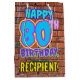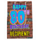A frente desta design de sacola de presente, temática de aniversário divertida, mostra a mensagem "FELIZ 80 BIRTHDAY", tendo um olhar colorido, vibrante, grafite e arte urbana de rua inspirada, além de um nome de destinatário personalizado. O plano de fundo apresenta um padrão inspirado pela aparência de uma parede de tijolos. Uma bolsa de presente temida de aniversário vibrante como esta pode ser uma maneira divertida de embrulhar um presente ou de apresentar a alguém que comemora seu oitavo aniversário. [~Z0000536]