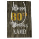 Sacola Para Presentes Média 80 Aniversário: Faux Dourado Look & Faux Wood Stan