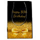 Sacola Para Presentes Média 80 de aniversário com arco de ouro em preto
