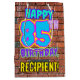 A frente deste design de bolsa de presente de aniversário divertido apresenta a mensagem "FELIZ 85.º ANIVERSÁRIO", tendo um olhar vibrante, colorido e inspirado no grafite, além de um nome de destinatário personalizado. O plano de fundo apresenta um padrão inspirado na parede do tijolo. Uma bolsa de presente vibrante como esta pode ser usada quando se dá um presente ou presente em honra do 85.º aniversário de alguém. [~Z0000536]