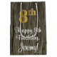 Este elegante, na moda, e sofisticado design de saco-presente com tema de aniversário apresenta um grande número ordinal "8º" com um padrão de gradação de tipo ouro imitação/falsa, juntamente com a mensagem de saudação de aniversário "Feliz 8.º Aniversário" e um nome de destinatário personalizado numa letra estilo script. O fundo tem um padrão falsa inspirado em madeira. Um saco de presentes temático de aniversário como este pode ser uma maneira divertida de embrulhar um presente ou de apresentar a alguém que comemora seu 8º aniversário. [~Z0000520]
